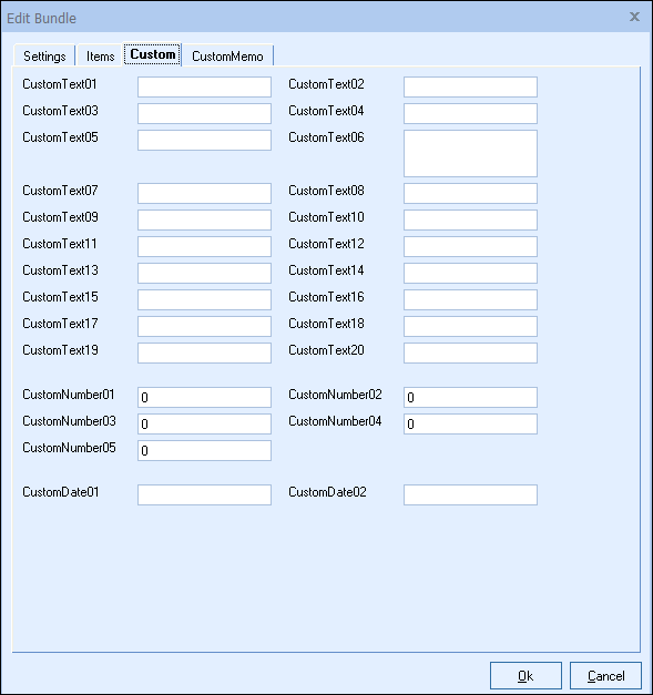 The Custom Tab for the Bundles provides an easy way to add additional information about the bundle or items on the bundle.  This lets you provide more details about what you are quoting out to the customer and is included on the header line of the bundle.