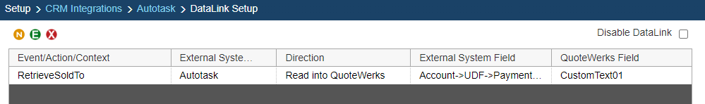 In the following example we are going to walk through how to pull the Account Name field from Autotask and have it populate a Custom Text field on the Custom tab in QuoteWerks.  You can pull this and many other fields through the DataLink mapping window.  You will need to create a new DataLink for each field you would like to populate however.