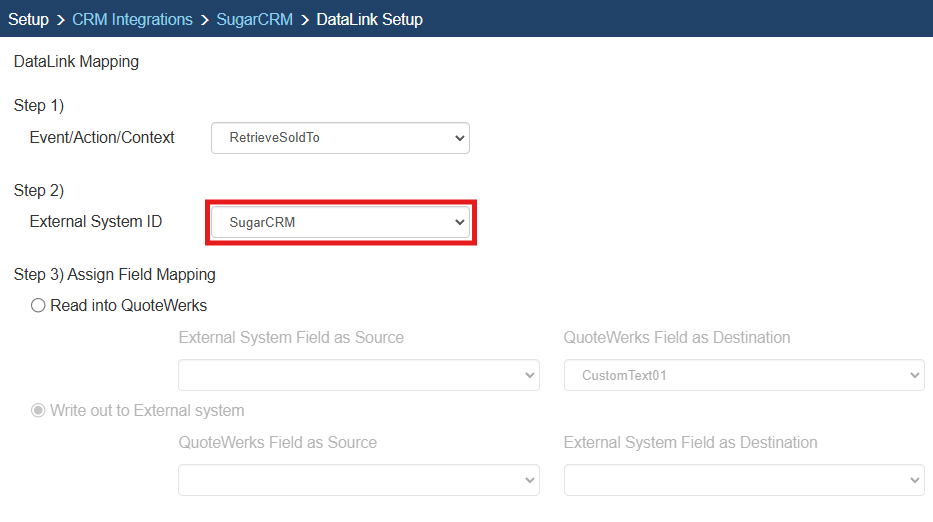 Step 3: Under the External System ID field, change the drop down to SugarCRM.