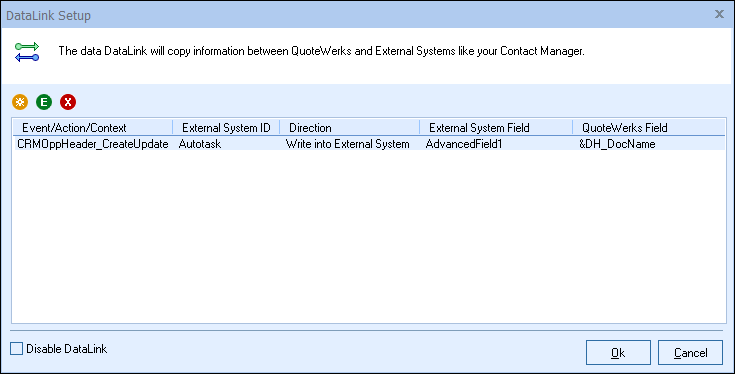 To disable a DataLink, highlight the DataLink and click on the checkbox for Disable DataLink. Uncheck it to re-enable the DataLink.