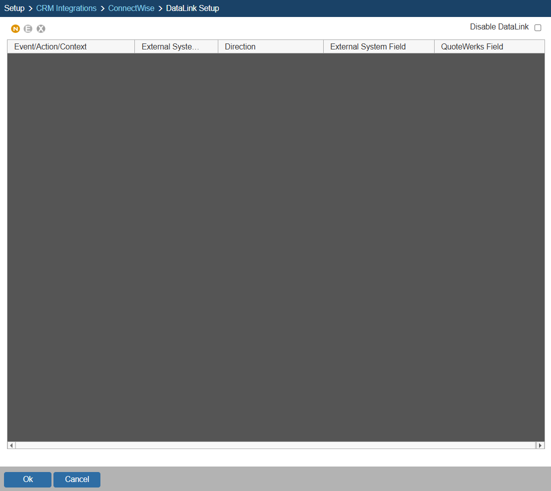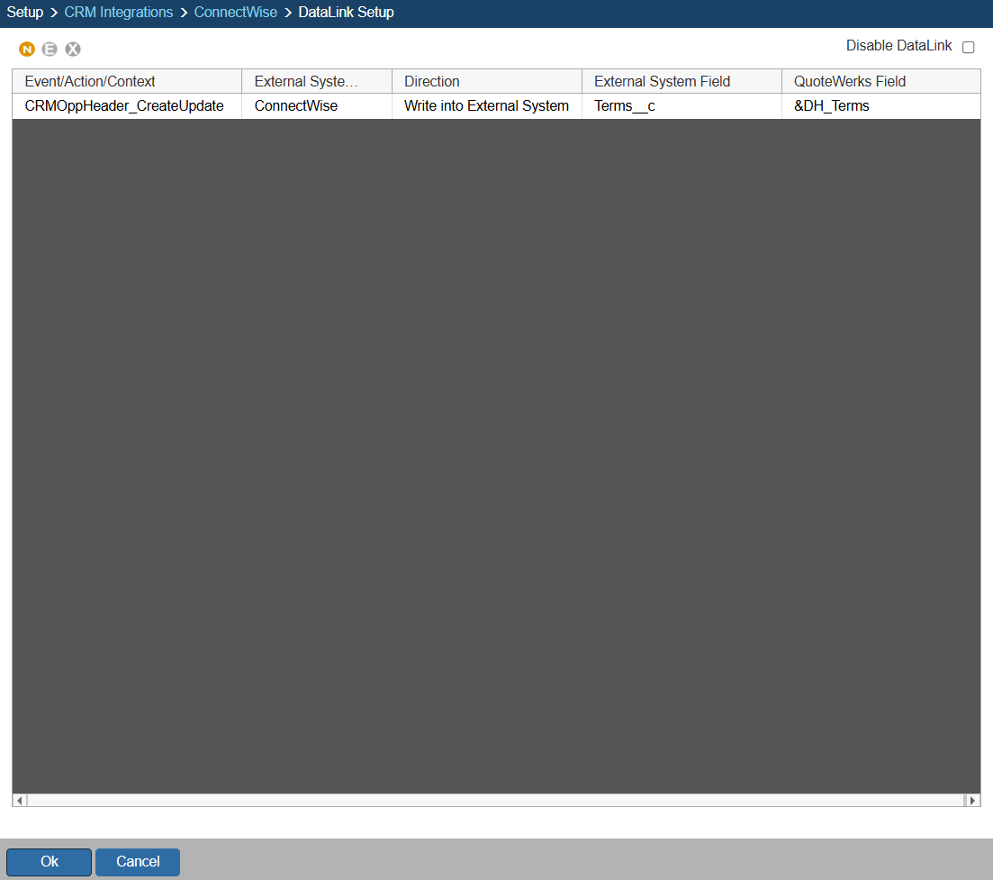 In the following example we are going to walk through how to push a contract date from QuoteWerks and have it populate a Custom Field in ConnectWise. You can push other fields through the DataLink mapping window. You will need to create a new DataLink for each field you would like to populate however.