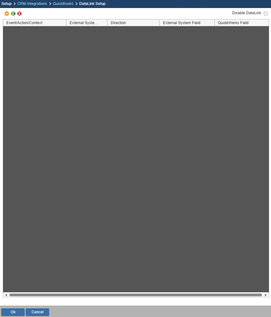 The DataLink Setup window will open. If you have not created a DataLink yet, the field will be blank: