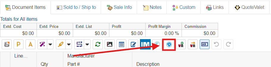 The Dell Punch-out integration is very easy to use once you have entered in your credentials. On the Grid Toolbar of the DocumentItems tab, a new icon
