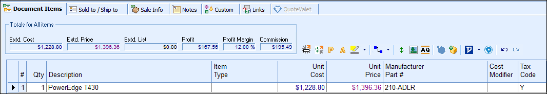 The Dell Punch-out integration is very easy to use once you have entered in your credentials. On the Grid Toolbar of the DocumentItems tab, a new icon