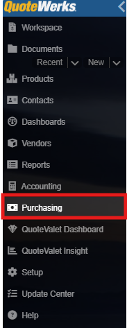1. Navigate to the Purchasing module by clicking on Purchasing from the left navigation toolbar.
