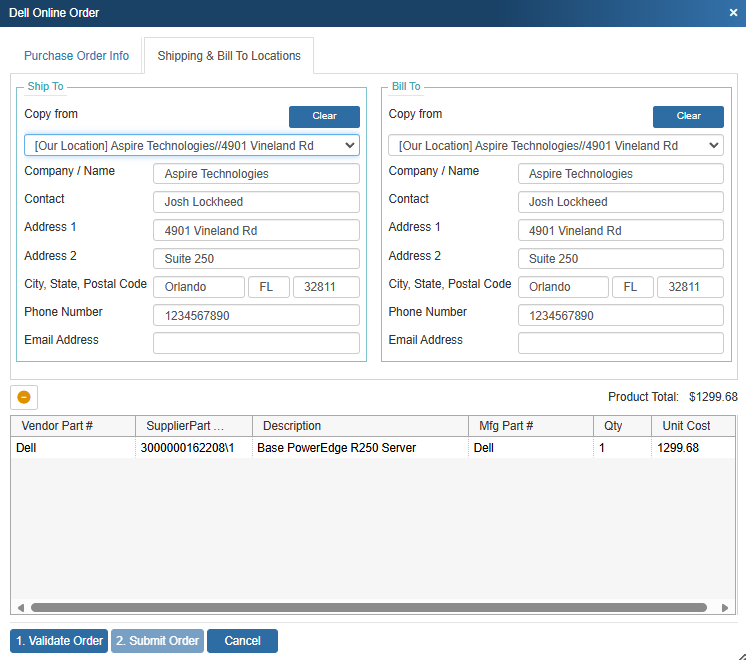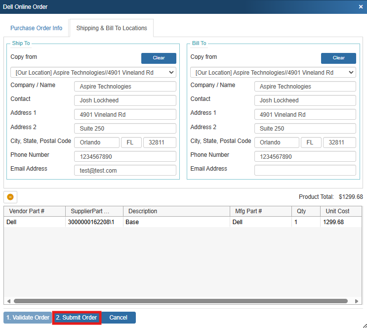 7. Once the order has been validated click on Submit Order to submit your online order to Dell.