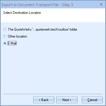 After you finish following the wizard's prompts and QuoteWerks creates the DTF file, the Send E-mail window will appear.