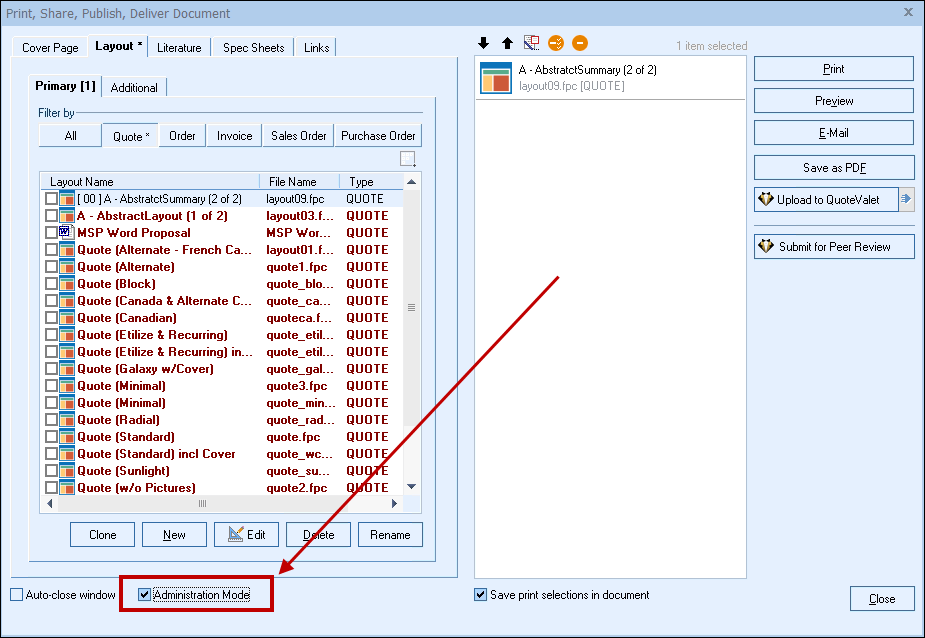 1.Click on the Administration Mode Checkbox to display all of your layout files.