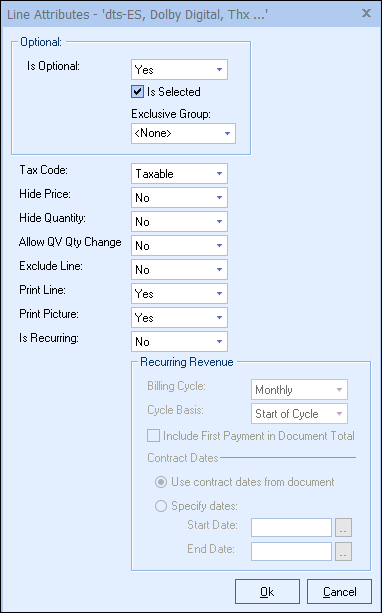 •With the Print Line attribute, you can specify to not print this item when the quote is printed.