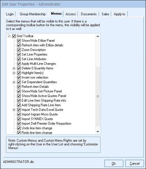 This is a great way for users to show/hide specific features that do not need or use. By un-checking the checkbox next to one of the features, the corresponding Grid toolbar icon will no longer appear on that specific users Gird Toolbar on the Document Items tab.