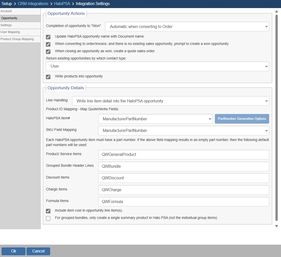 If selected, items from the QuoteWerks document will be written into the opportunity in HaloPSA.