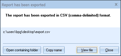 iv.Prompt to select output file (with this option selected it will prompt for the exported file name each time this report is exported)