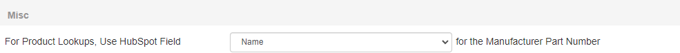 This drop-down box will map the selected QuoteWerks field to the HubSpot CRM item name.You can choose which field in QuoteWerks to map to the corresponding field (ItemName, PartNumber, etc.) in HubSpot CRM. You can select the ManufacturerPartNumber, InternalPartNumber, ItemType, and more. Typically, the manufacturer part number will be used, unless you're creating your own custom part numbers in HubSpot CRM.