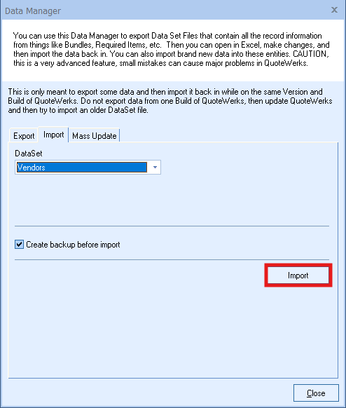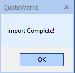 Note that this is the same process you would follow to import any of the different available datasets into QuoteWerks using the Data Manager.