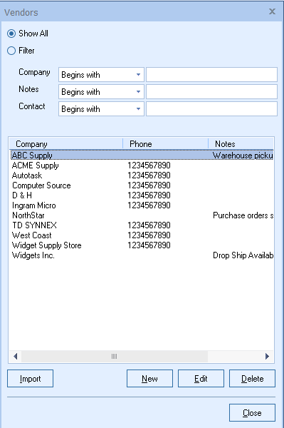 8. The vendor import is now complete and you should verify everything was imported correctly by navigating to Utilities -> Vendor Maintenance. All of the vendors you just imported should now be listed.