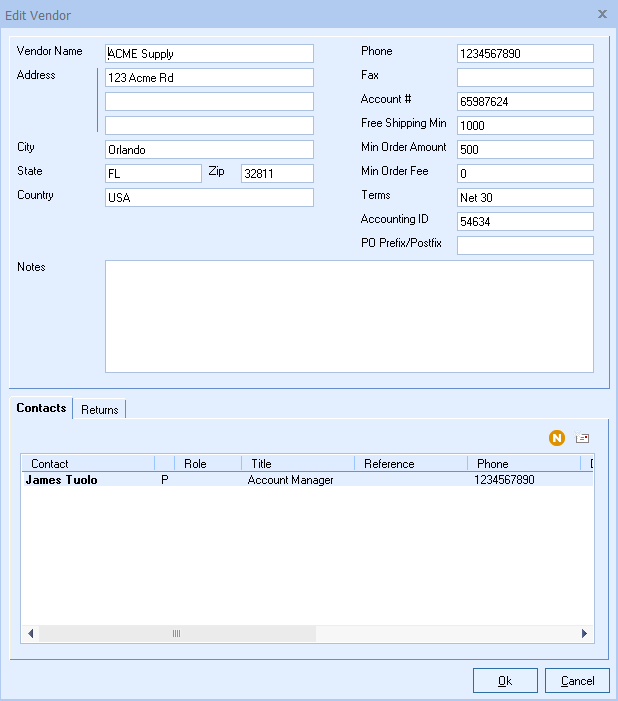 10. If you click on a vendor and select the edit button you will see all of the information you entered has been imported into the vendor record.