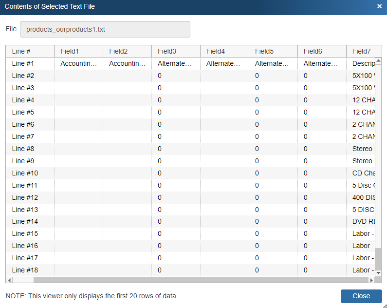 Often, the first row of data in delimited text files contains the column titles of the data that is contained in these columns. Using this “Start at Row” feature, you can instruct QuoteWerks to only import data starting at for example the second row since the second row will actually be the first row that contains data.