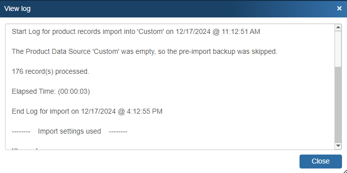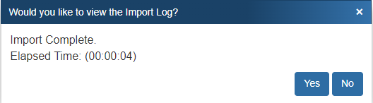 After the import has completed, you will be asked if you would like to view the Import Log File for errors.