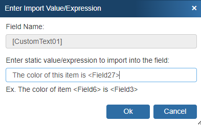 Selecting a QuoteWerks field and then clicking on the [Properties] button will enable you to import a static value or evaluate an expression when importing.