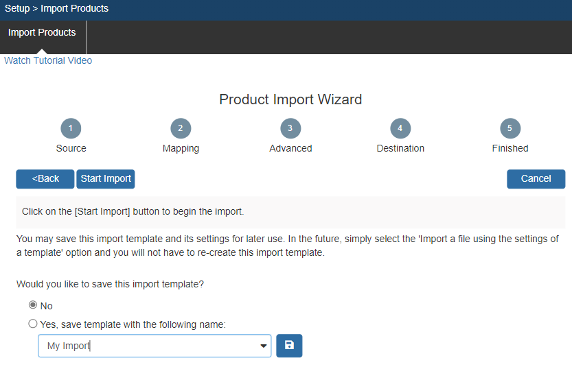 To start the Import Wizard, navigate to Setup -> Import Products.