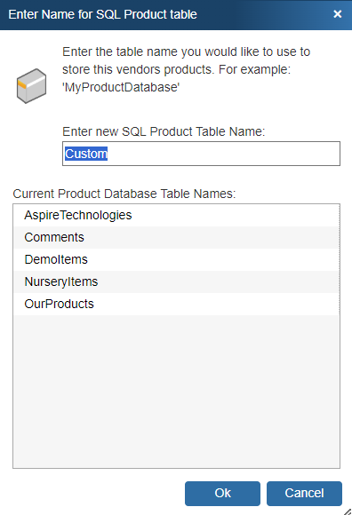 If you are using the Corporate Edition of QuoteWerks, this step will prompt you to “Enter a Name for SQL Product table.” This will be the name of the Vendor’s product list in the QuoteWerks SQL database.