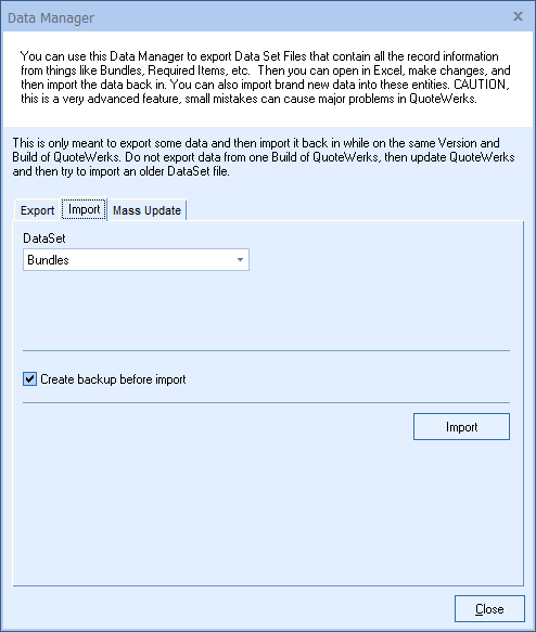 The option to backup your data before the Import is available (and highly recommended).