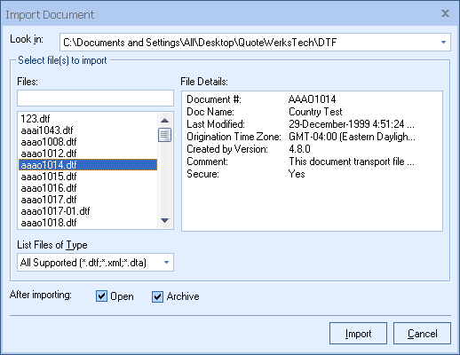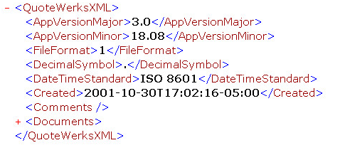 QuoteWerks can import Documents (quotes, orders, invoices) from an XML formatted document into QuoteWerks as a quote/order/invoice.  An XML formatted document is a newer industry standard for storing text data. In essence, it is more robust and extendable than the industry standard flat delimited text file format. Many web applications and software products can export data out as XML formatted files.