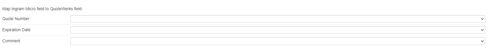 These options enable users to map the Ingram Micro Quote Number, Expiration Date, and the Line Item Comments to a CustomText or CustomMemo fields in QuoteWerks. When mapped, the information in these fields from Ingram Micro will automatically be populated in the QuoteWerks quote.