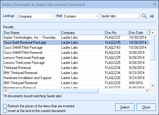 If you check the ‘Refresh the prices of the items that are inserted’ checkbox, QuoteWerks will update the pricing information of the products from the product database as it inserts the line items into the current quote.
