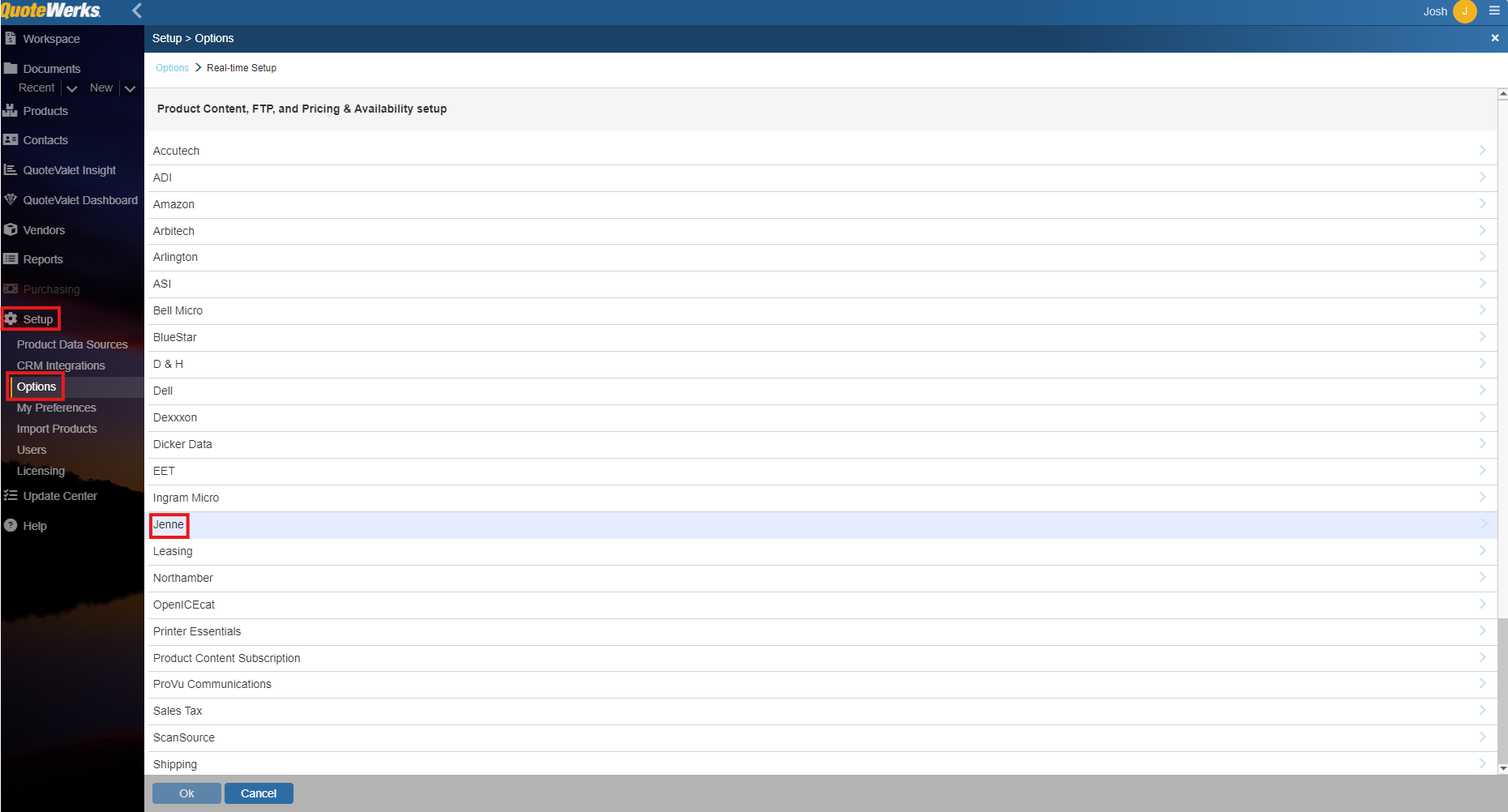 1. To setup Jenne Real-time pricing and availability navigate to Setup > Options > Real-time Setup and select Jenne.