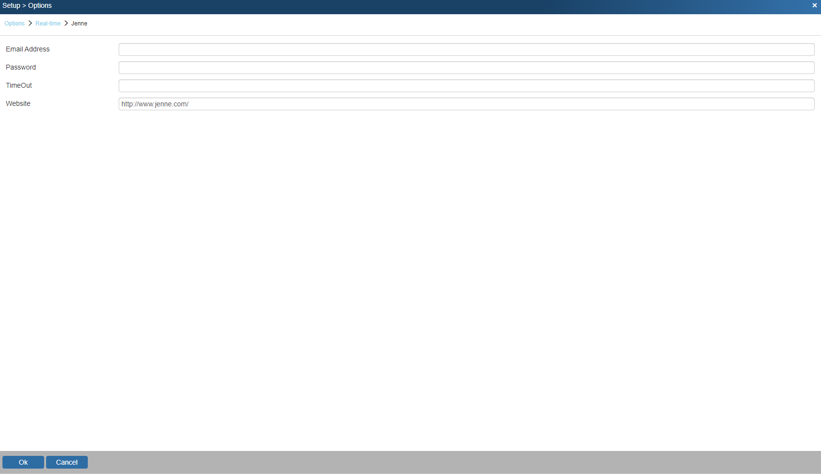 2. Input your Email Address, Password, TimeOut and Website information and click [OK].
