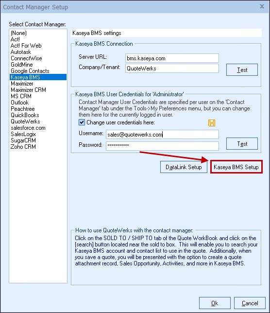 To learn more about the setup tabs presented to you on the Kaseya BMS Setup window, see: