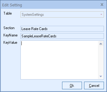 5. Select the Key Name of SampleLeaseRateCards and click on the edit button.