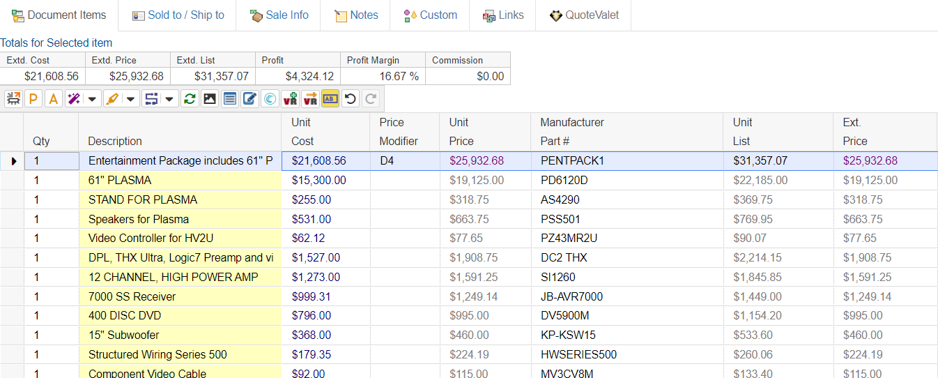 Navigation: QuoteWerks Web > Using QuoteWerks Web > Working with Document Items