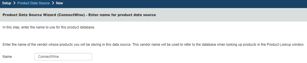 Step 5: On this window you can set the name of the product data source:
