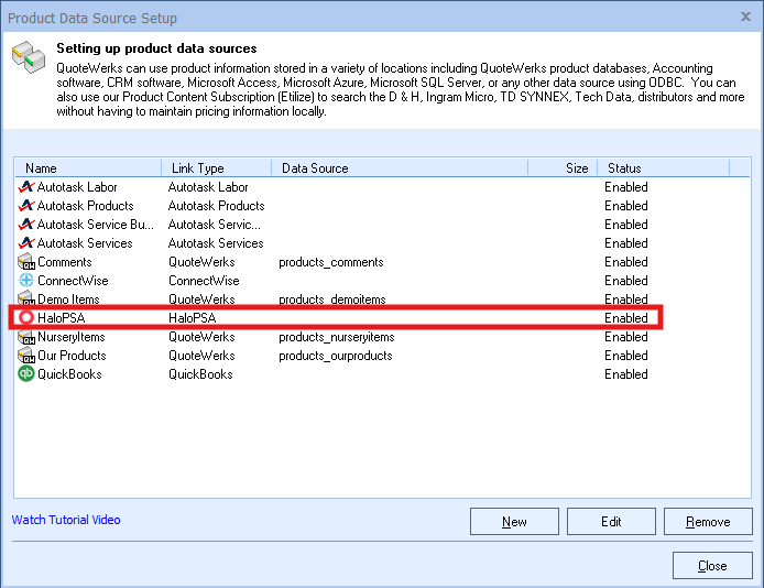 The Corporate Edition of QuoteWerks can link to the HaloPSA Item list. This is valuable because you will have real-time access to your HaloPSA products.