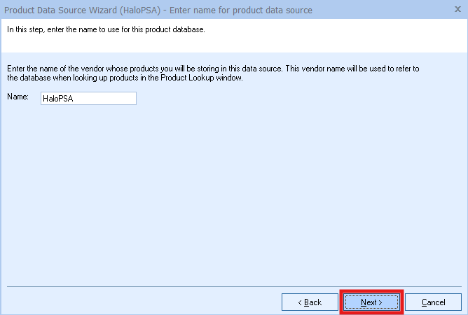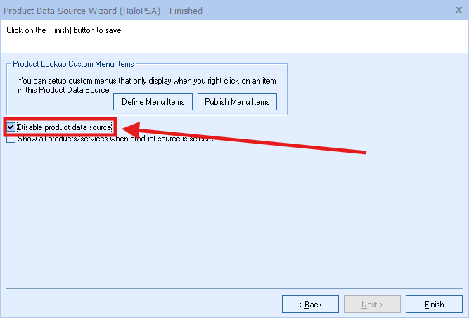 Step 9: Once you click on the [Finish] button it will return you to the Product Data Source Setup window where you can confirm that the link to the HaloPSA product list was established: