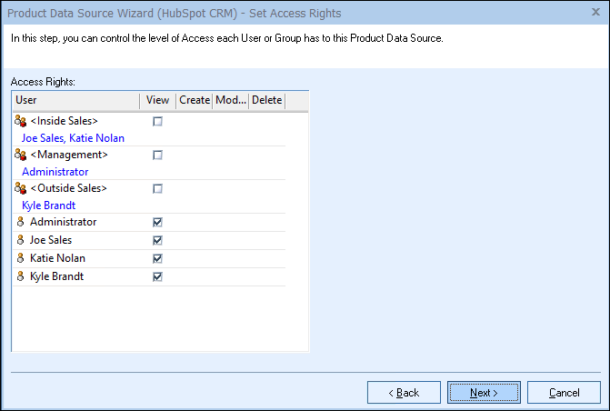 Step 7: If the ‘Individual Product Data Source level security’ has been enabled, the Security step will appear next: