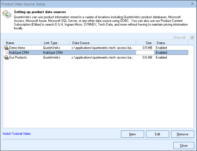 The Professional and Corporate Editions of QuoteWerks can link to the HubSpot CRM item list. This is valuable because you will have real-time access to your HubSpot products and services.