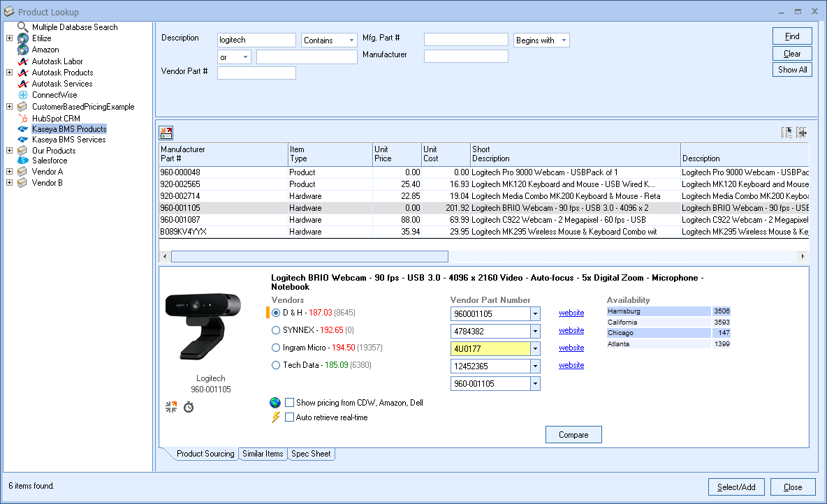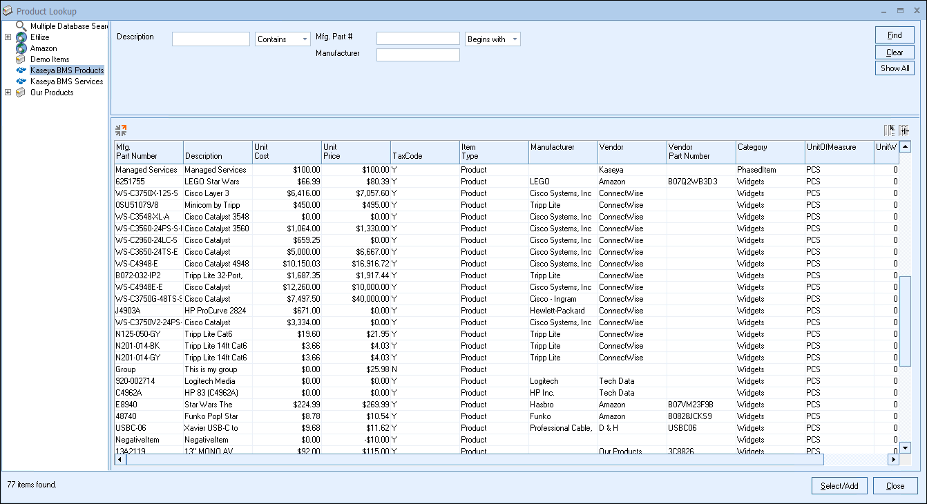 Kaseya BMS Products and Services can also be used Bundles and Configurations in QuoteWerks if you are quoting from these databases on a regular basis and sell grouped or kit items.