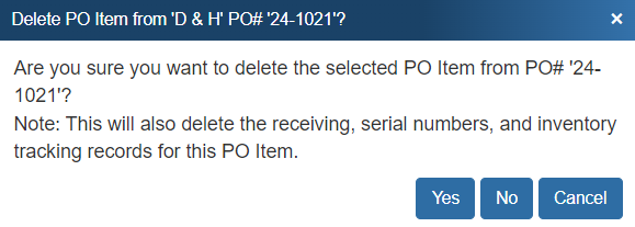 Deleting an item from a purchase order is commonly used for when you create a manual purchase order for a vendor, include two items on it, and then find out that the distributor requires that both items cannot be on the same purchase order. You can use it for any reason you wish, however.