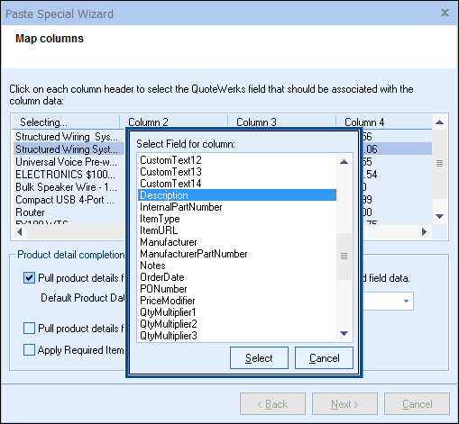 This feature can be very useful for integrating with external configuration software such as Hewlett Packard configuration software which generates a list of part numbers that you can copy into the Windows clipboard or any quote in Excel or a table that needs to be copied and pasted into QuoteWerks.  The Paste Special Wizard will walk you through this process.