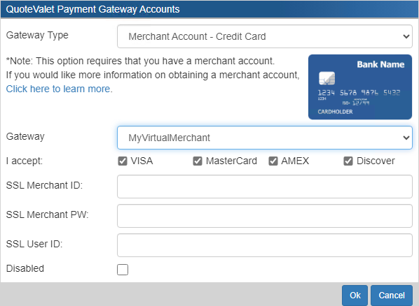 This topic covers how to set up QuoteValet payment processing to work with My Virtual Merchant/Converge.  To set up the integration, you will need 3 required pieces of information.