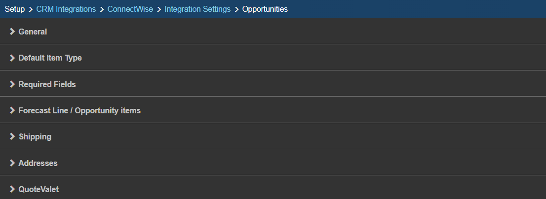 Under the ConnectWise Setup window's Opportunities tab, you'll define the defaults for the creation of ConnectWise Opportunities.