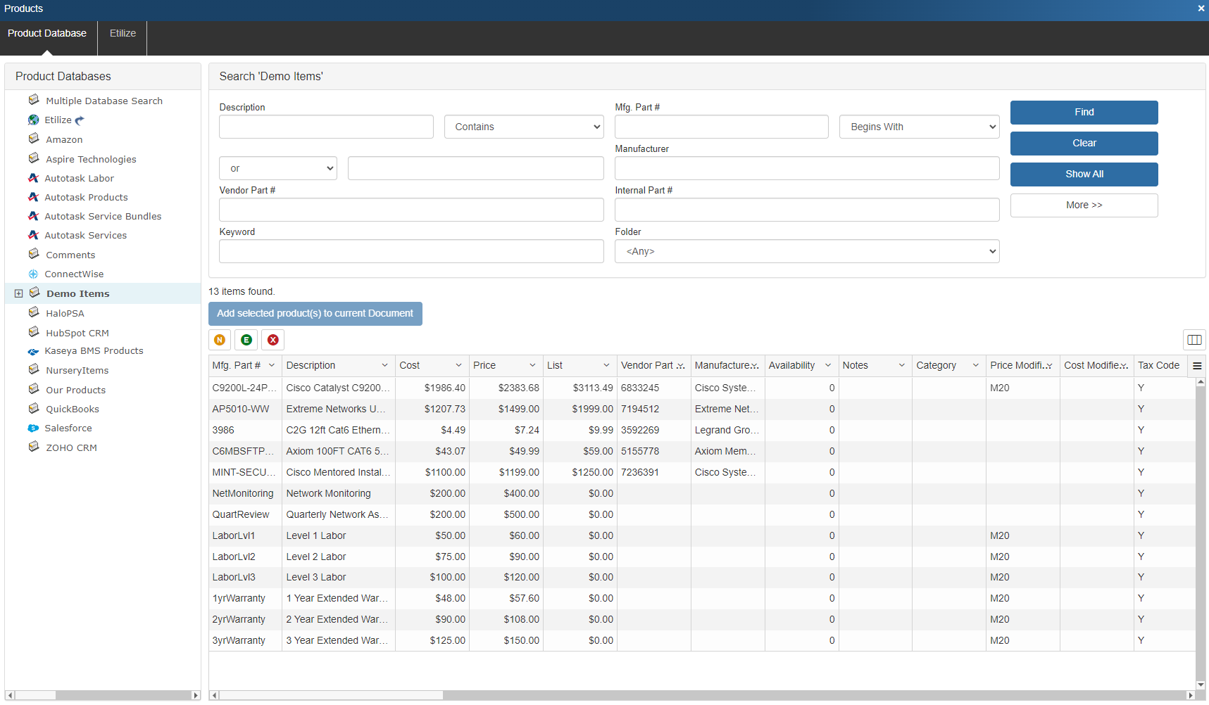The drop-down menu will display a list of item databases that have been setup in QuoteWerks. Here you can choose where to source this item from the available databases.
