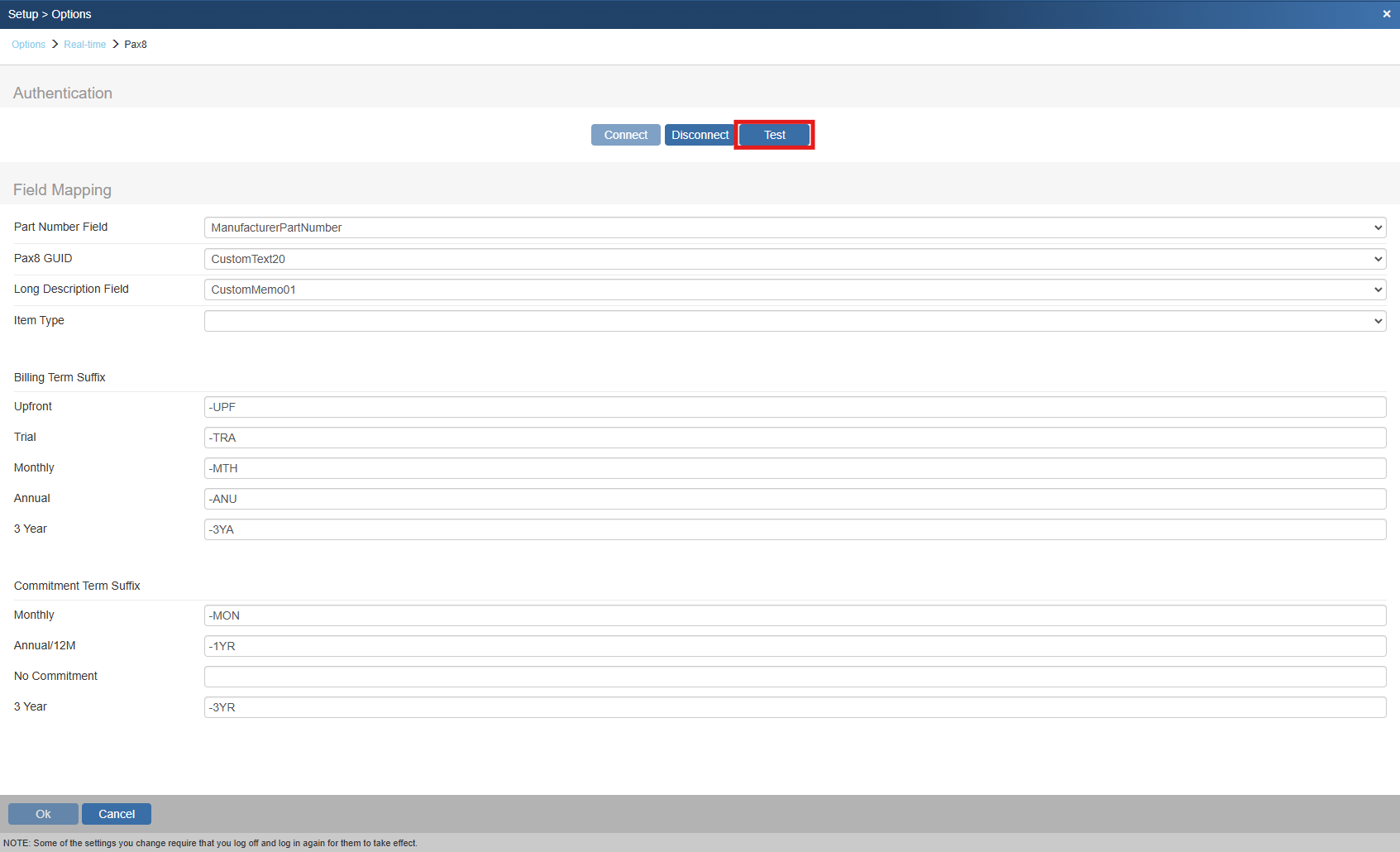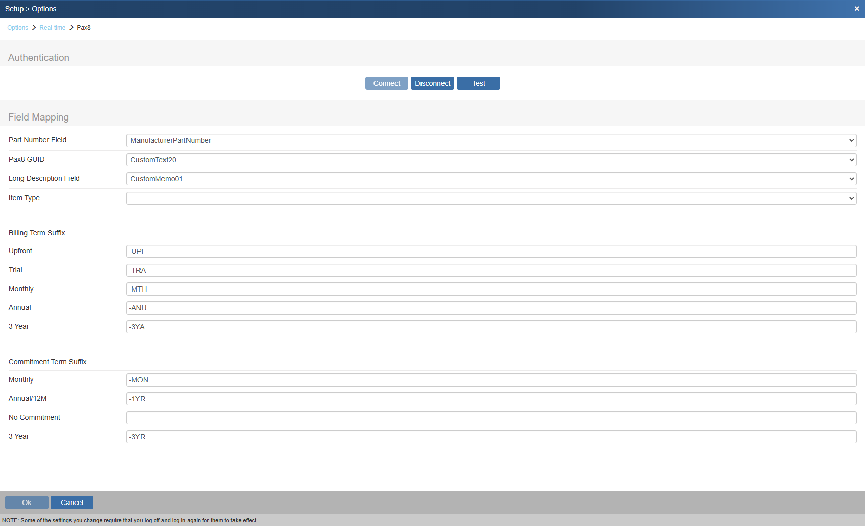 Long Description Field - set which field to place the Long Description from Pax8. This is defaulted to CustomMemo01.