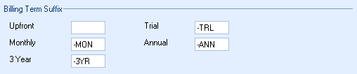 For example, based on the above settings, if you are using part number 1234 and it is on a monthly billing cycle, the amended part number will be 1234-MON. Alternatively a annual billing cycle will have an amended part number of 1234-ANN.
