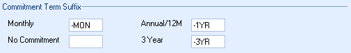 Here you can set how to amend the Pax8 part number to reflect the items commitment terms. You can set a 4 character suffix for each commitment term which will be placed at the end of the Pax8 part number and billing terms suffix.