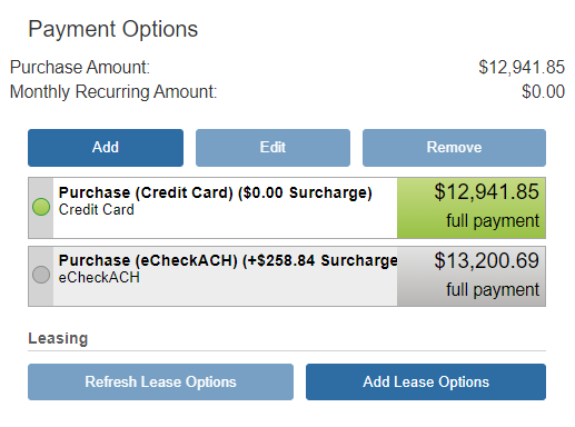 Visit the Lease Payment Options section of this manual to create a lease payment for your quote.
