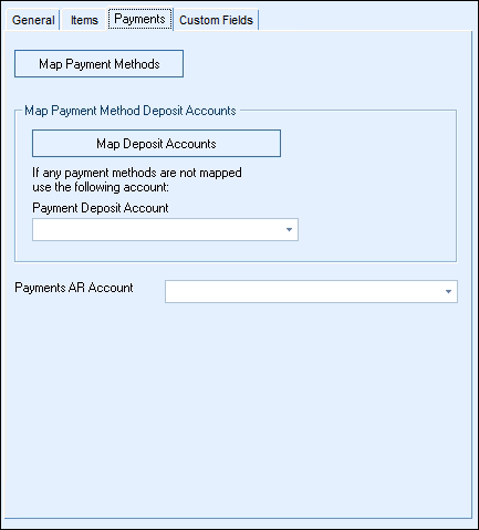 The mappings become even more important when accepting check or wire transfer payments by proxy as you will typically want to deposit those payments into different accounts, for example, a check would go into "Undeposited Funds", whereas a wire transfer would be deposited directly into the bank account.